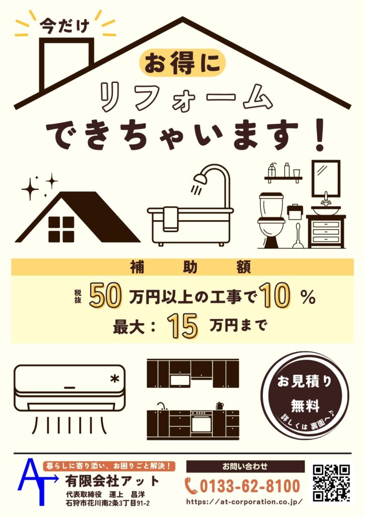 2025年石狩市住宅リフォーム補助金のご利用は弊社アットで!