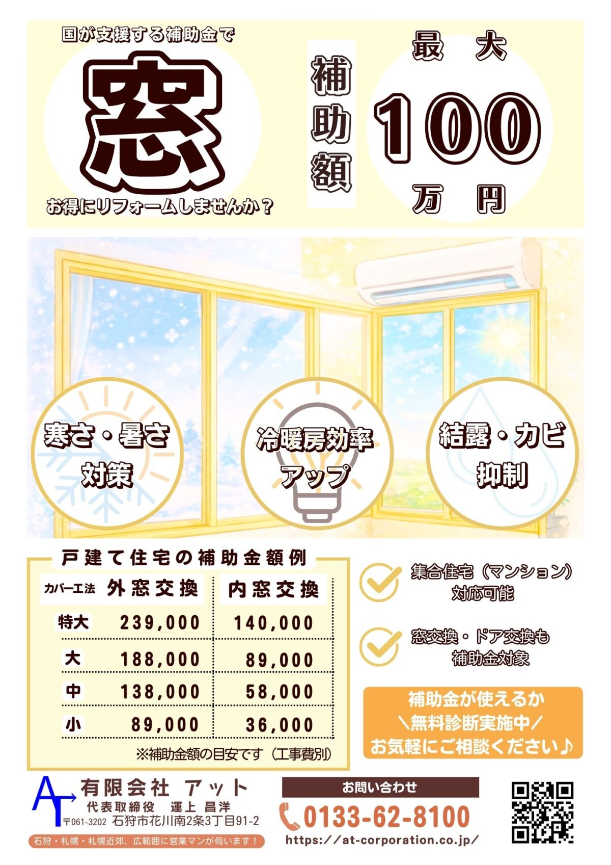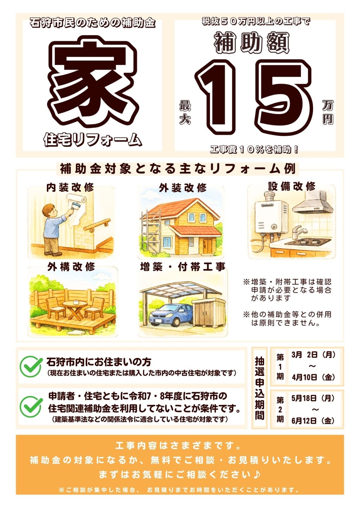 2025年(令和7年)3月13日から、石狩市の住宅リフォーム補助金の抽選申し込みが開始されました。リフォームするなら石狩の有限会社アットにお気軽にご用命ください! -